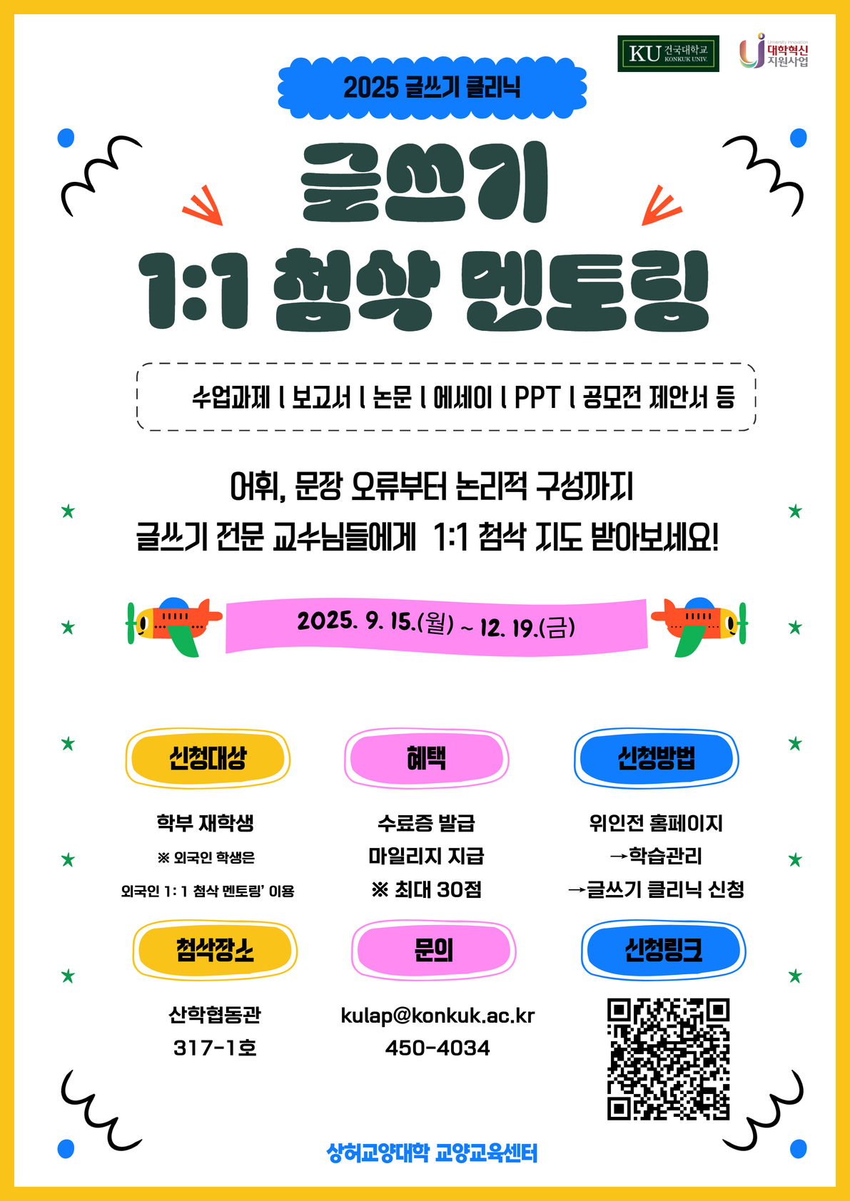 2025학년도 2학기 '글쓰기클리닉 1:1 첨삭 멘토링' 안내