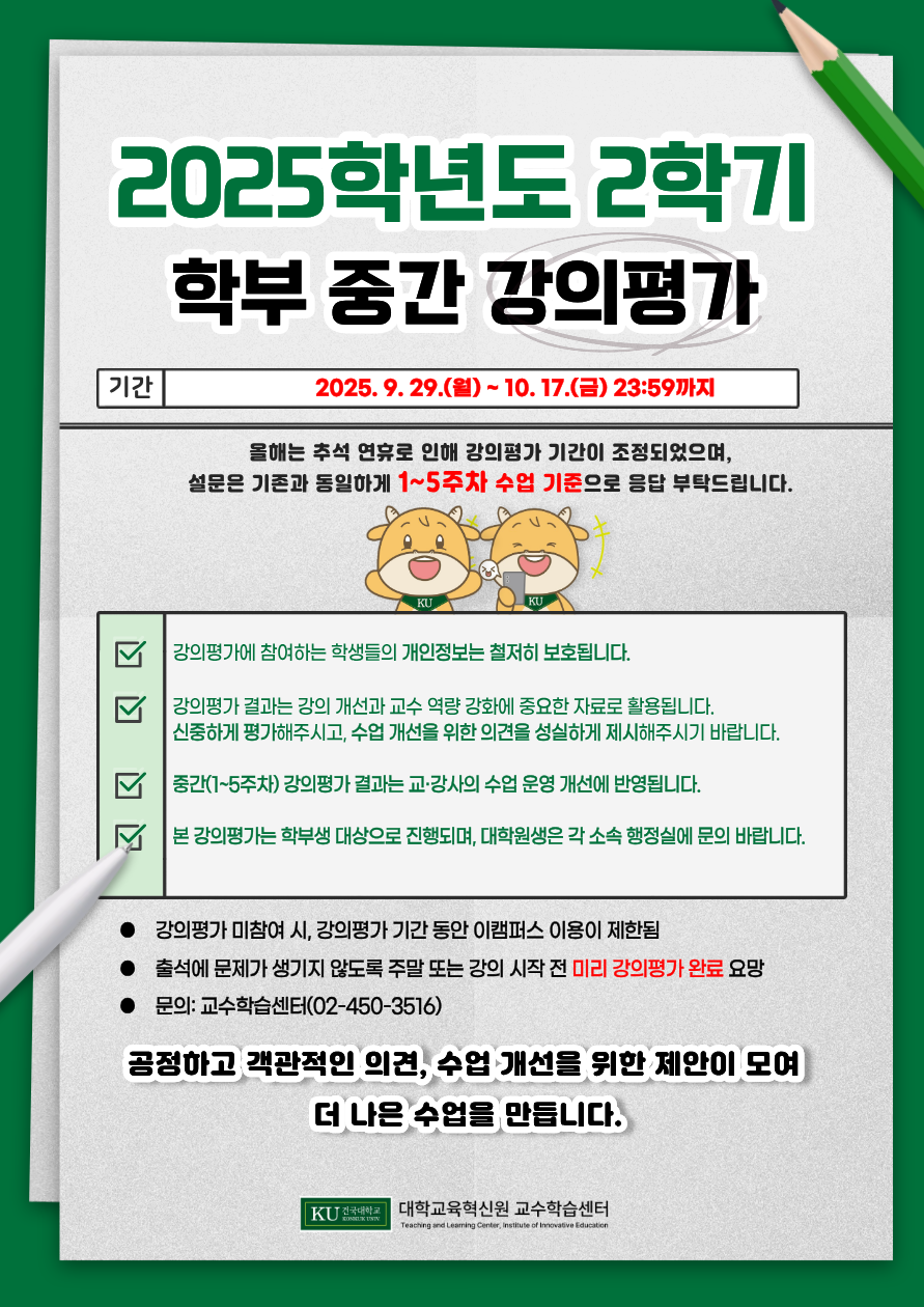 (~10/17(금) 23:59) 2025학년도 2학기 학부 중간 강의평가 시행 안내